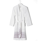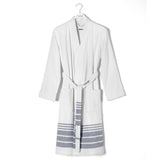 Fabric outside, terry inside, this highly light and comfortable bathrobe creates an elegant combination when used with the Marine Slippers.