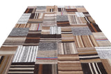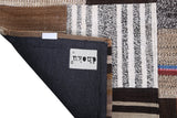 This is a new approach to the production of Turkish kilims. Beautiful plain flatweaves from vintage curtains, grain sacks, and throws are collected from the different regions of Anatolia. These unique, distinctive weavings go through many different steps in the process of selection, cleaning and preparation, etc. Then talented designers patch together the different pieces of kilim material with specialized sewing techniques, creating brand new contemporary looking kilims. The final product is both “ethnic” and “contemporary”, perfectly matching pieces of numerous flatweaves.