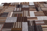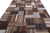 This is a new approach to the production of Turkish kilims. Beautiful plain flatweaves from vintage curtains, grain sacks, and throws are collected from the different regions of Anatolia. These unique, distinctive weavings go through many different steps in the process of selection, cleaning and preparation, etc. Then talented designers patch together the different pieces of kilim material with specialized sewing techniques, creating brand new contemporary looking kilims. The final product is both “ethnic” and “contemporary”, perfectly matching pieces of numerous flatweaves.