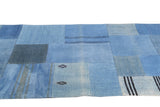 This is a new approach to the production of Turkish kilims. Beautiful plain flatweaves from vintage curtains, grain sacks, and throws are collected from the different regions of Anatolia. These unique, distinctive weavings go through many different steps in the process of selection, cleaning and preparation, etc. Then talented designers patch together the different pieces of kilim material with specialized sewing techniques, creating brand new contemporary looking kilims. The final product is both “ethnic” and “contemporary”, perfectly matching pieces of numerous flatweaves.