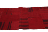 This is a new approach to the production of Turkish kilims. Beautiful plain flatweaves from vintage curtains, grain sacks, and throws are collected from the different regions of Anatolia. These unique, distinctive weavings go through many different steps in the process of selection, cleaning and preparation, etc. Then talented designers patch together the different pieces of kilim material with specialized sewing techniques, creating brand new contemporary looking kilims. The final product is both “ethnic” and “contemporary”, perfectly matching pieces of numerous flatweaves.