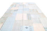 This is a new approach to the production of Turkish kilims. Beautiful plain flatweaves from vintage curtains, grain sacks, and throws are collected from the different regions of Anatolia. These unique, distinctive weavings go through many different steps in the process of selection, cleaning and preparation, etc. Then talented designers patch together the different pieces of kilim material with specialized sewing techniques, creating brand new contemporary looking kilims. The final product is both “ethnic” and “contemporary”, perfectly matching pieces of numerous flatweaves.